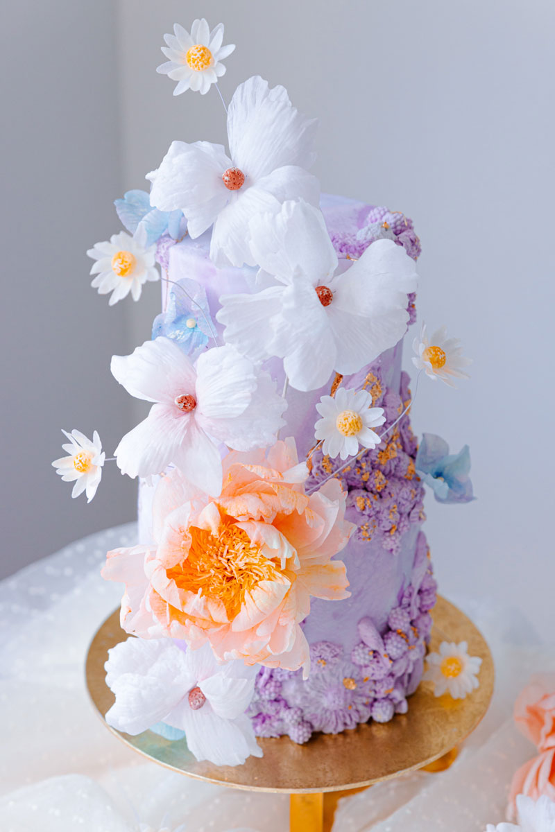 Save as PDFLevel: Intermediate – 1 day prep Techniques: Filling and stacking a 3 layers real cake using white chocolate buttercream. Introduction to buttercream flowers: Piping methods, color mixing, 2D and 3D flowers: Peony, Ranunculus, Rose, Strawberry blossom, hellebore, anemone, daisies, wild mini flowers, leaves, raspberries and strawberries.