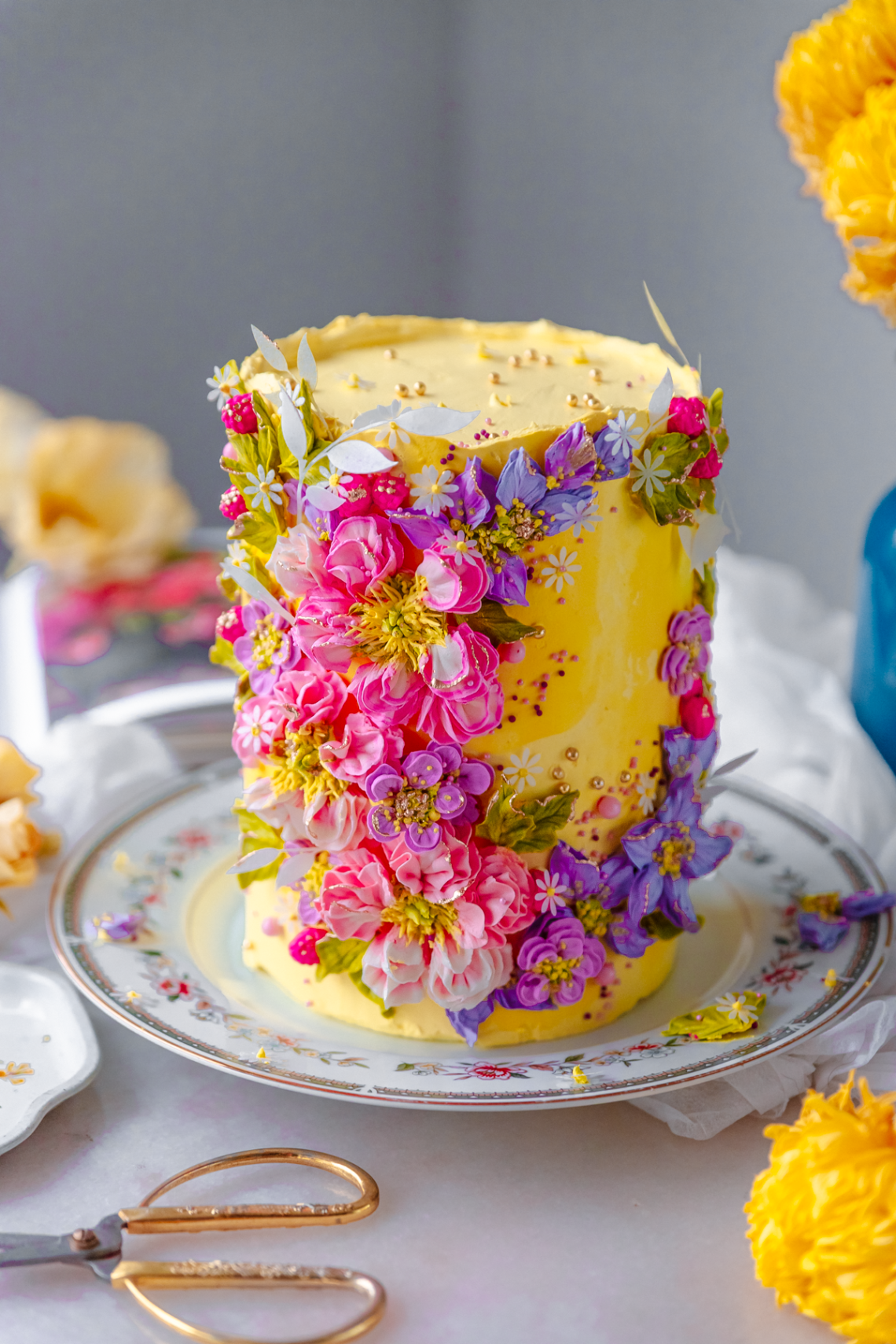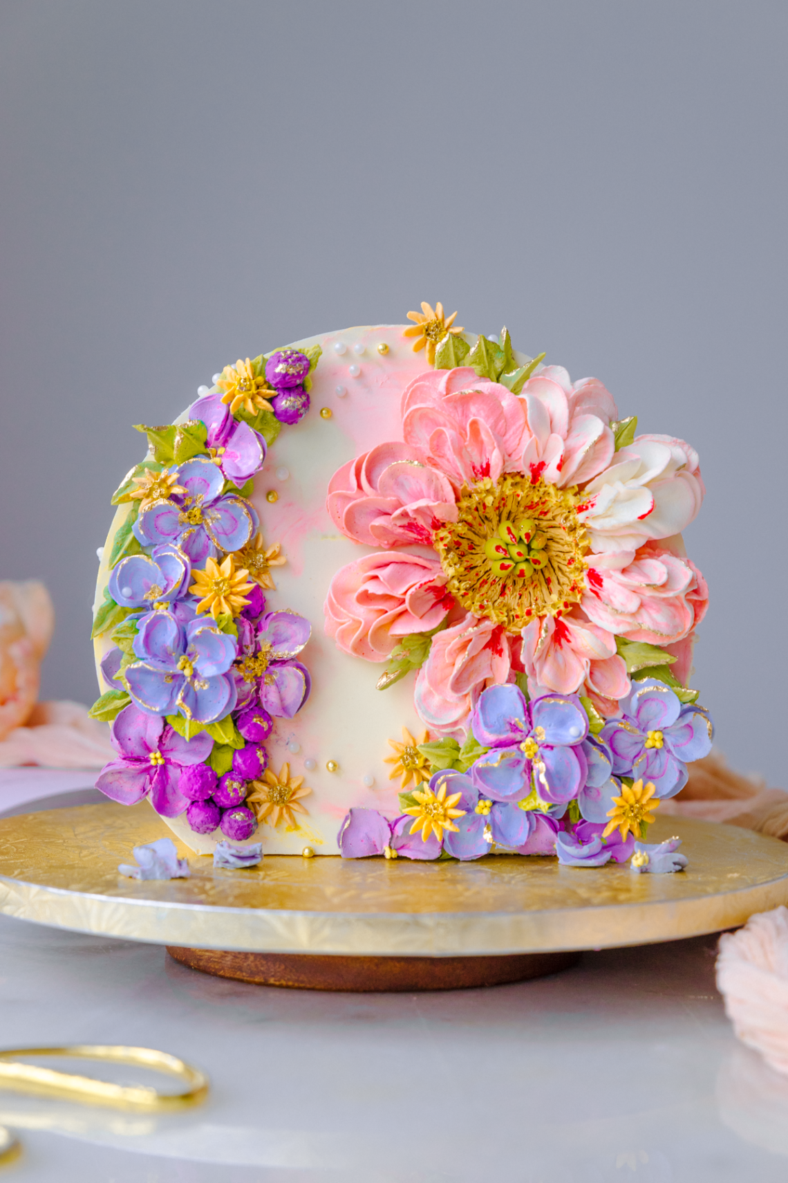 Arch Cake and Big Buttercream Flowers