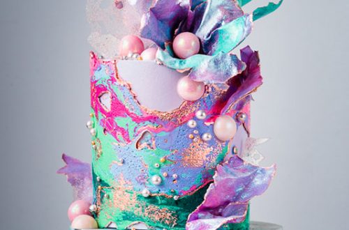 Techniques: Covering a real cake with marbled fondant and bas-relief details. How to create sugar flowers: Closed Peony, Rose, Hydrangea, leaves and berries.